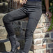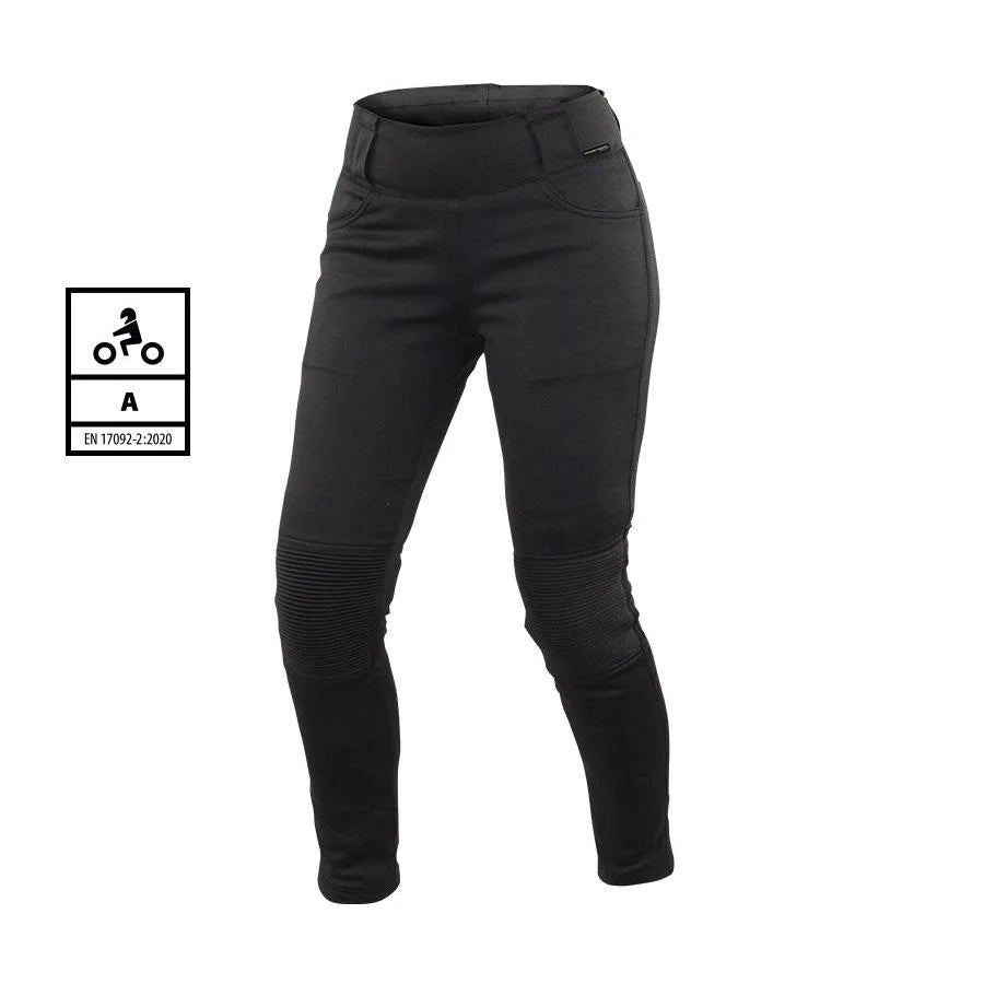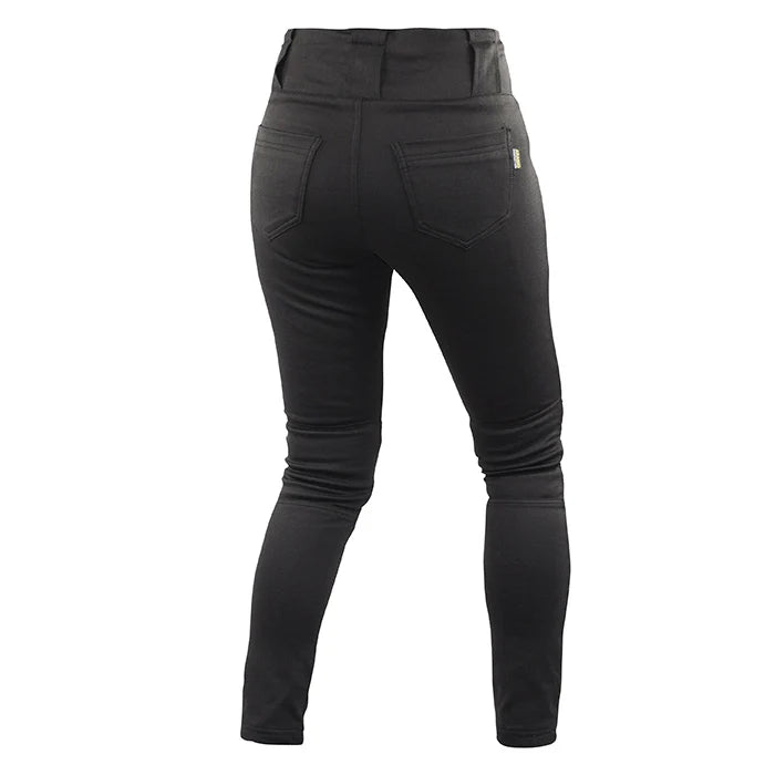 When leggings are your favorite pants to wear for comfort, fashion and to showcase your nice legs, then why wear anything else on your bike? Save your skin with moto-specific reinforced leggings. Cut to make them feel like a normal pair of jeans even though they are far from it. The comfort is given by soft stretchy fabric, stretch panels above knees and higher flexible waistband without a front zipper. Lined with Aramid Fiber at front & back these Leggings are designed for abrasion resistance. They feature internal pockets for knee and hip armors for complete protection you would expect from motorcycle gear. Two front and 2 back external pockets to stash your needs.