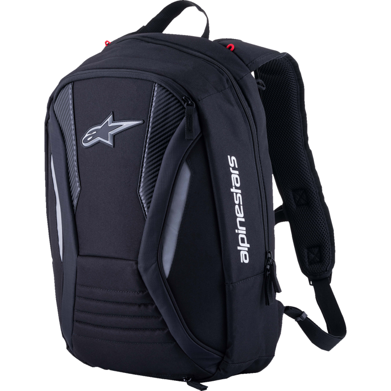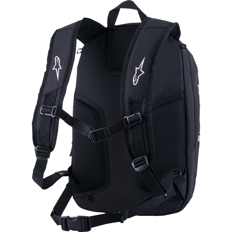 A padded laptop pocket with a closure strap, individual organizer pockets plus additional mesh pockets allow riders to quickly and easily sort and store items