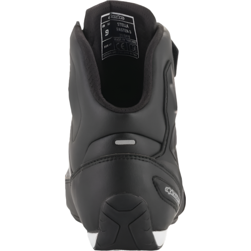 Featuring new performance innovations adapted from decades of R&D experience in the highest level of motorsports, the Stella Faster-3 Drystar® Shoe is lightweight and incorporates class-leading protective features, both inside and outside which have been formed around a female specific foot shape. The Stella Faster-3 Shoe is constructed from a lightweight, durable microfiber chassis and incorporates Alpinestars Drystar® 100% waterproof membrane for excellent performance in wet weather conditions.