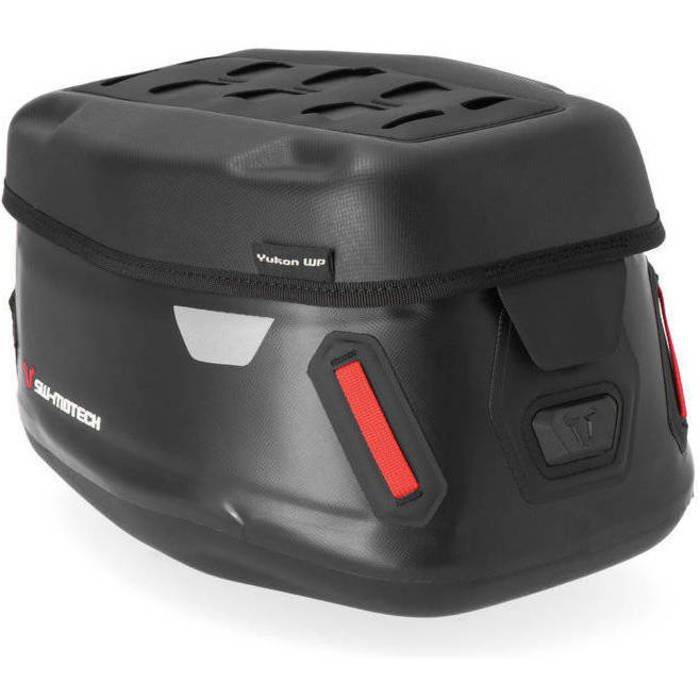 The waterproof tank bag from the PRO series: The Yukon WP (waterproof) offers all the advantages of the PRO series and protects your luggage from rain and splashing water in all weather conditions. The overlapping lid and the bottom made of stable EVA are securely welded to the TPU body. Thanks to the plastic welding, the materials join seamlessly and securely with one another. The clear, waterproof compartment inside the lid offers space for smartphone or map, and there is room for most important travel accessories in the spacious inner compartment with 6 liters of volume. With the Yukon WP, you can transport electronic devices and cameras safely in any weather. Dust and water don't stand a chance here.