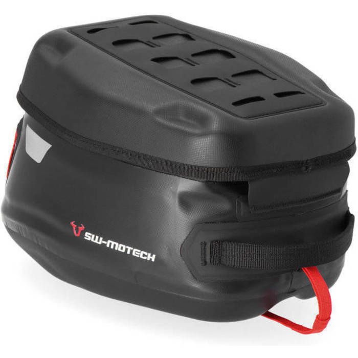 The PRO tank bag offers elegant and timeless design together with durable materials and sophisticated product features. The top made of laminated EVA gives the bag a striking shape and ensures a secure hold for auxiliary products like smartphone and tablet mount, along with a MOLLE attachment made from durable hypalon. The top ring guide rail, which comes attached from the factory, allows easy adjustment of the position of the tank bag on the tank and to the ergonomic needs of the rider. Only the PRO tank bags offer this flexibility. Matching this, SW-MOTECH offers the patented PRO tank rings made of fiberglass-reinforced plastic. They are manufactured to match the motorcycle model and attached to the tank filler neck. The robust PRO tank ring with magnetic guide aid secures the PRO tank bags with a mechanical QUICK-LOCK snap closure. This allows the tank bags to be attached or removed with just one hand.
