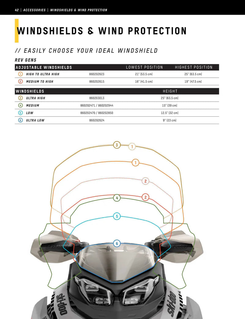 Standing at an impressive 25 inches (63.5 cm), the Ultra High Windshield features a robust one-piece central structure and works in conjunction with our Medium/high side deflectors, ensuring you get complete protection from the wind. Say goodbye to chilly rides as it fully covers your handlebars and upper body.