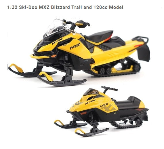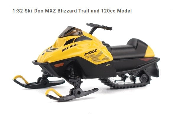 The Ski-Doo 1:32 MXZ Blizzard & MXZ 120cc Kid's Yellow Snowmobiles capture the fearless spirit of winter adventure in a compact, detailed form. Crafted from diecast metal and plastic, these models feature articulated front skis and authentic track design, reflecting the bold, straightforward essence of Ski-Doo. Perfect for fans who embrace the thrill of the ride, these snowmobiles embody trusted craftsmanship and fanatical attention to detail.