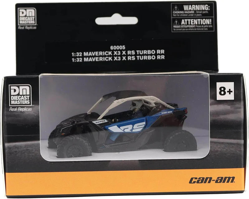 The 1:32 Scale Can-Am Maverick X3 X RS Turbo RR is built for extreme off-road adventures. This highly detailed diecast model features rugged suspension, precise bodywork, and realistic tire design, mirroring the power of the real Can-Am Maverick X3. This Diecast Masters model is a must-have for Can-Am enthusiasts.
