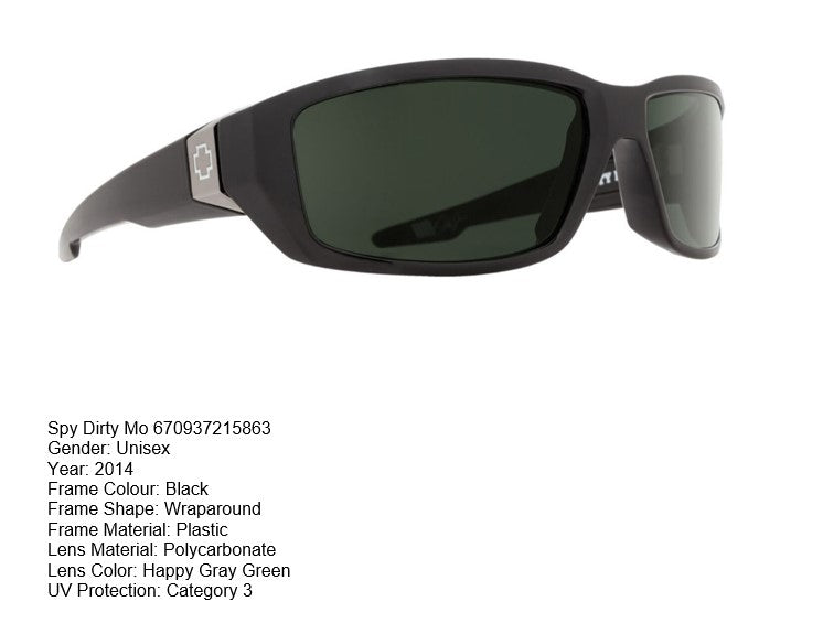 Spy Dirty Mo sunglasses are made with the finest materials and superior craftsmanship, plus with the mix of a Black frame and Happy Gray Green lenses you're sure to wear these sunglasses for years to come.
