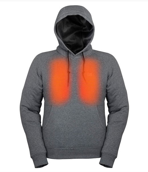 The Mobile Warming 7.4volt Phase Pull Over Heated Hoodie is designed for everyday use. The Phase Heated Hoodie was designed to keep you warm in cold weather conditions, from hiking to hunting, or on the commute to work, the Phase Heated Hoodie keeps you warm & looks great in any activity. The light-weight shell with 65% cotton fleece is soft and warm. Powered by a rechargeable 7.4volt lithium-ion battery, the Phase Hoodie large heat zones keep you warm for hours. The Phase Heated Hoodie lets you wirelessly adjust the temperature on-the-fly. The Phase Heated Hoodie features the integrated touch control button.