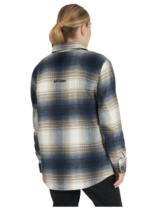Crafted from 100% cotton, this shirt promises comfort without compromising on durability. The front opening features Ski-Doo branded press buttons, ensuring a secure fit while you tackle your adventures. With two chest pockets adorned with a small Ski-Doo patch and a striking embroidery at the back, this overshirt is a testament to your passion for snowmobiling. Embrace your bold spirit and showcase your love for the ride with this essential addition to your wardrobe.