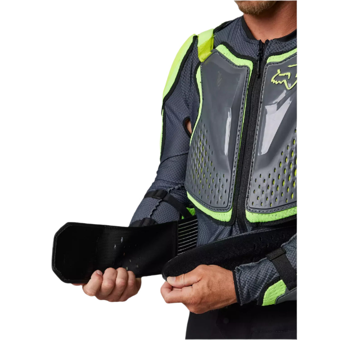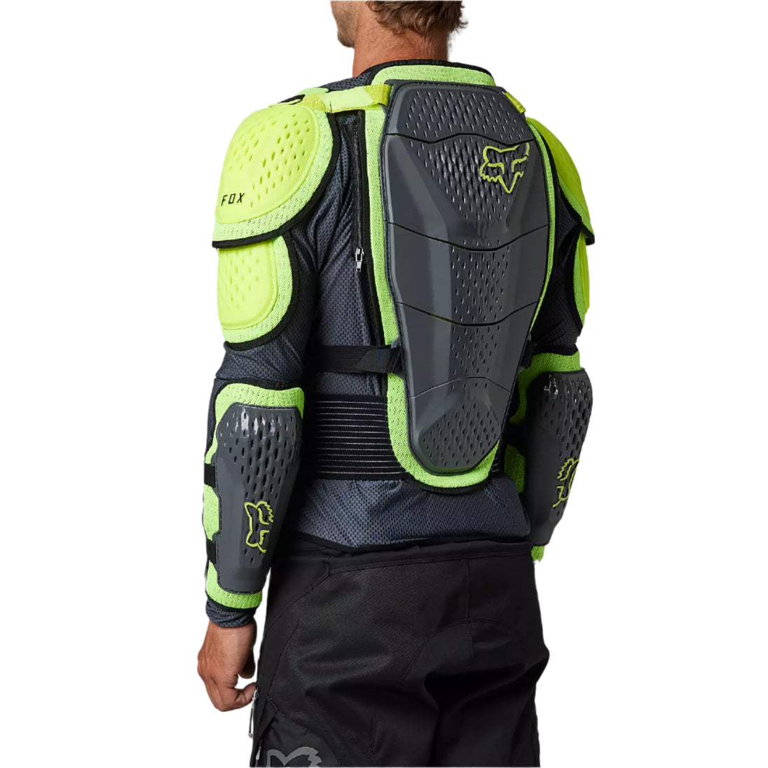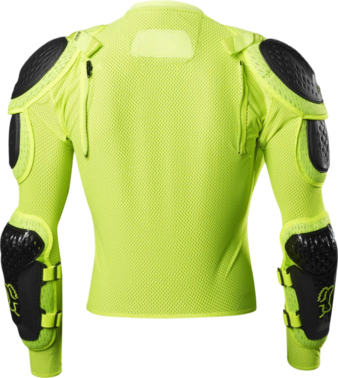 Get all the upper body pads in one suit. Fox Racing Titan Sport jackets offer intelligently engineered, full under-jersey body coverage. Soft, vented mesh main body fabric enhances the fit, comfort, and ventilation of these jackets, eliminating bunching. They feature an anatomically designed, high-impact, 2-piece plastic chest plate and a removable articulated plastic black plate that can be worn separately if you choose. High-impact plastic shoulder and elbow coverage complete the unmatched protection of key contact areas. Fox Racing Titan Sport jackets are easy to put on and take off with a center zipper.