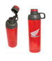 Screw off PP lid with top cap Screw off smaller top lid to drink from Carry handle attached to lid Holds up to 890 ml. (30 oz.) Care instructions included BPA free and FDA compliant Stay hydrated on-to-go