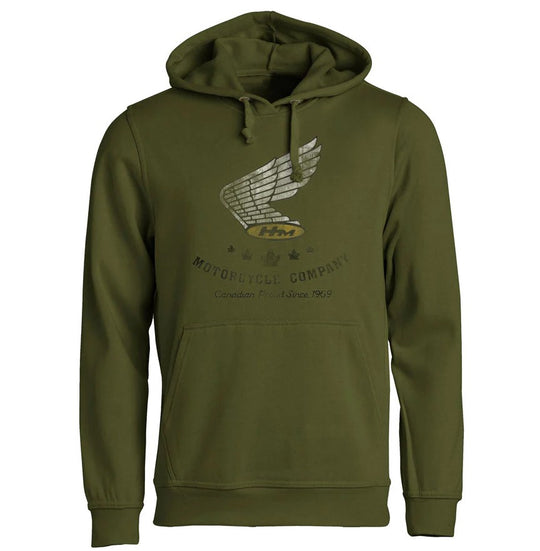 Honda Pullover Hoodie-Green Cotton, 20% recycled polyester fleece. 3 ply fleece, 100% cotton face Double layer hood lined with jersey. Contrast chevron tape at neck seam. Adjustable contrast flat draw cord. Double layer ribbed cuff and...Regular price $56.99 -