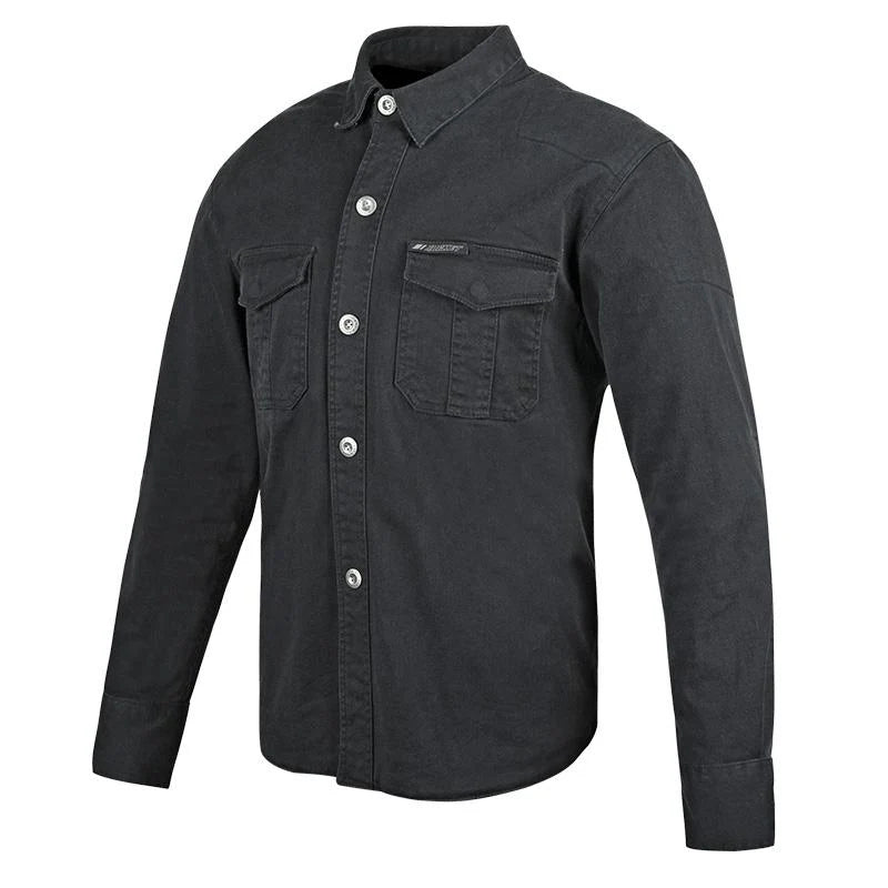 Hogtown™ armoured motorcycle shirt from Joe Rocket Canada® features a cotton-poly blend shell with a snap down collar and hidden main zipper opening. It comes equipped with removable Vault™ C.E. approved shoulder, elbow and spine protectors with the shoulders and elbows reinforced with Dupont Kevlar fiber thread. Shoulder expansion gussets are included for minimal movement restriction and belt loops for pant attachment so that the jacket doesn't ride up.