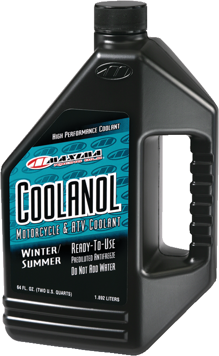 Maxima Coolanol is a ready-to-use 50/50 blend of premium quality anti-freeze and deionized water to provide optimum rust and corrosion protection for all aluminum and magnesium motorcycle and ATV liquid cooled engines. Coolanol also contains anti-foam agents to reduce water pump cavitation and increase cooling capacity. Coolanol 50/50 blend protects from freeze-ups in winter down to -34°F. Coolanol also raises your cooling systems boiling point to 265°F with a 15 lb. radiator cap. This extremely low-silicate fluid is ideally suited for all motorcycle applications.