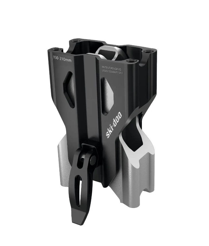 Introducing the Adjustable Riser, a game-changing addition to your Ski-Doo steering controls. This innovative component allows you to instantly modify your handlebar height, adapting seamlessly to your riding conditions. Whether you prefer the lower position for trail riding or need to extend to a maximum height for stand-up adventures, this riser has you covered—all without the need for tools. With an adjustable length ranging from 6.9" to 9.3", you can ride with confidence and comfort. Embrace the freedom of choice and elevate your experience with this patent-pending design.