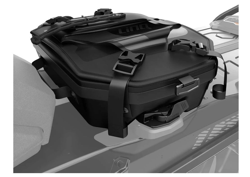 Easily attachable with one set of LinQ fasteners, this bag fits snugly in positions 0, 1, 2, and above the LinQ Fuel Caddy. The innovative shovel holder system on the cover ensures your tools are always at hand, while the pocket under the lid provides quick access to essentials. The brightly colored interior makes finding your items a breeze, and the removable interior with three dividers allows you to organize your cargo like a pro. Plus, cleaning is a cinch! Get ready to embrace the snow with confidence and style.