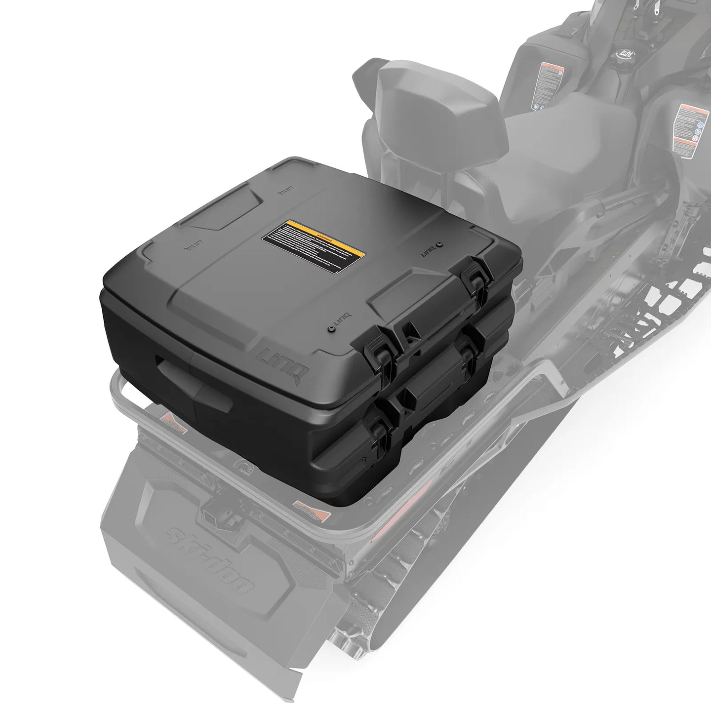 The LinQ Utility Premium Cargo Box - 135 L is a game-changer for your powersports adventures. This rugged, versatile cargo box is crafted for the fearless rider who demands both utility and convenience. With a massive capacity of 135 liters, it's perfect for organizing all your gear. Customize your storage by dividing it into two compartments with a plywood floor (not included), or transform it into a compact version by relocating the top lid. The snow and water-resistant design ensures your belongings stay secure, while the integrated axe holder and four hook attachment points offer unmatched convenience. Elevate your ride with this bold addition to your ride.