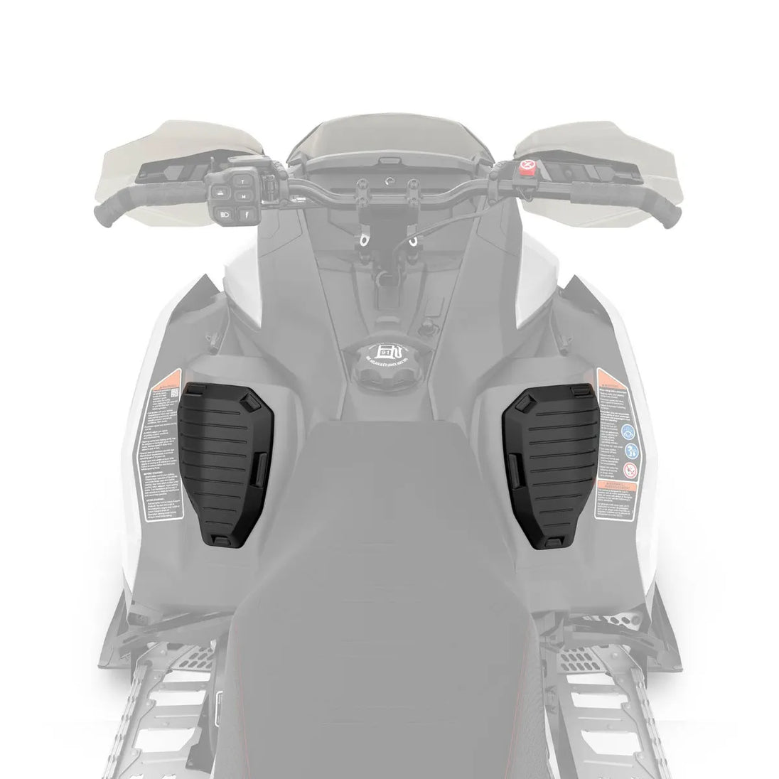 Introducing the Ski-Doo Trail Soft Knee Pads, the ultimate companion for your adventurous rides. Designed specifically for the REV Gen5 (Trail) without manual reverse, these knee pads offer unparalleled comfort and impact absorption. Experience the freedom of movement as your knees glide effortlessly between the ergo 1 and ergo 2 positions. Crafted from a flexible injection molded material, they ensure a snug fit while allowing for maximum agility. Installation is a breeze with the innovative Christmas tree type fasteners, making these knee pads a practical addition to your gear. Embrace the ride with confidence and style.