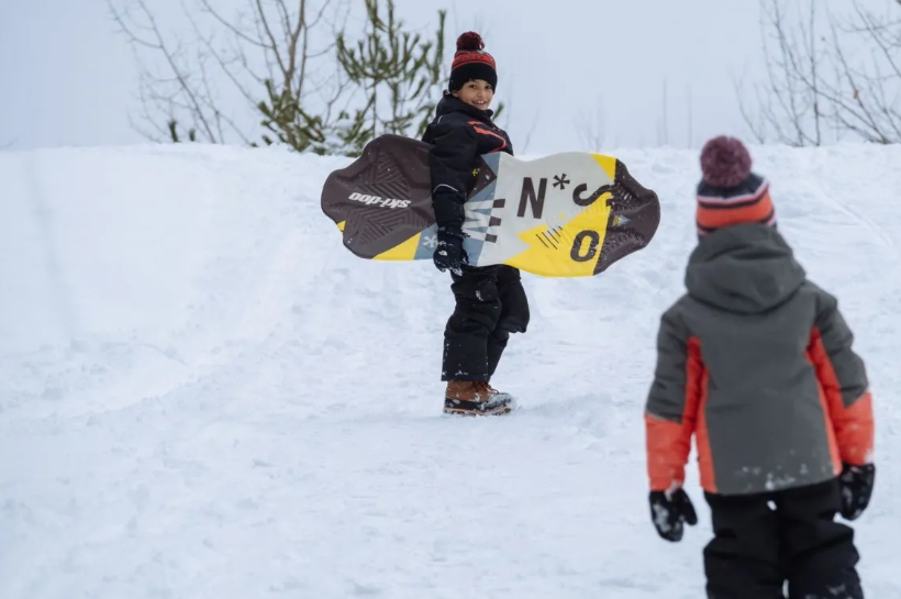 The Ski-Doo Foam Sled is a 2-way sled for up to 2 riders that is super lightweight to carry uphill even for kids, but a heavyweight performer downhill when it comes to fun and thrills.