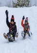 The Ski-Doo Mini Snow Sled for single rider lets you ride rodeo-style with upraised feet while holding the handle to steer. The textured seat offers extra grip to keep you riding on without sliding off.