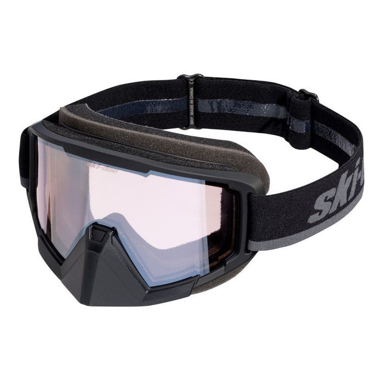 Introducing the Ski-Doo Trench XL UV Goggles, the ultimate eyewear for the fearless snowmobile enthusiast. Designed for those who live for the thrill, these goggles feature an injection double lens that boasts anti-scratch, anti-fog, and distortion-free optics, ensuring crystal-clear vision in any weather. The wider thermo-formed face foam provides an unparalleled fit, while the no-slip silicone strap keeps them securely in place during your wildest rides. With a vibrant light silver mirror tint, you'll experience enhanced visual acuity even in flat and low light conditions. Plus, the removable nose guard offers extra protection against cold and debris. The XL design is tailored for colder climates, covering more space between the goggle and helmet. Embrace the adventure with confidence and clarity.