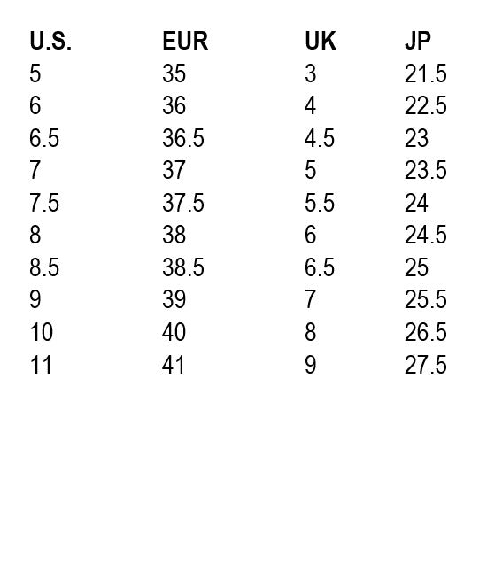 Unisex styles are based on Men’s shoe sizes. For women’s size, add 2. Example: Men’s/Unisex Size 8 =