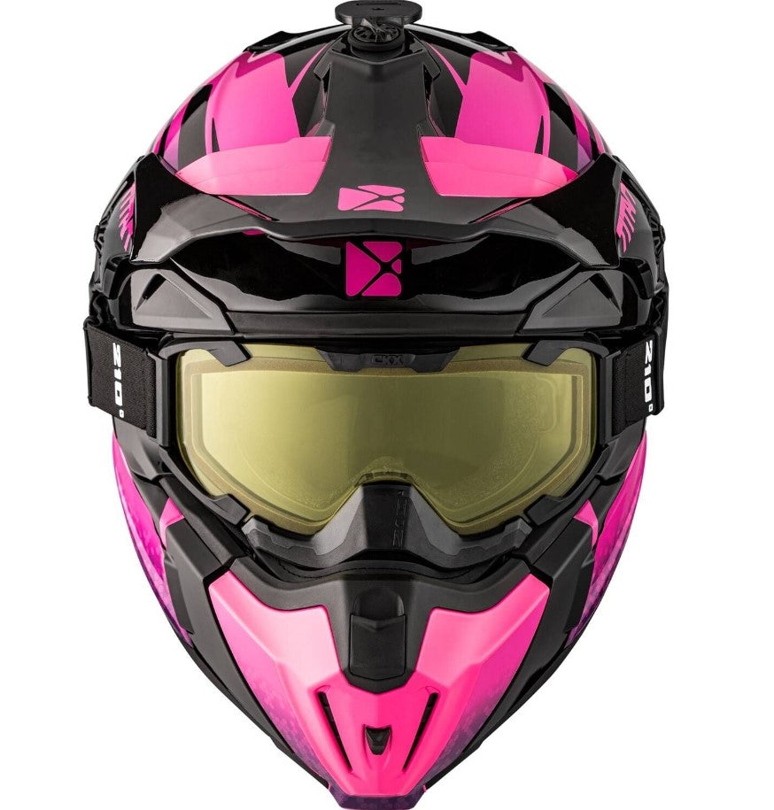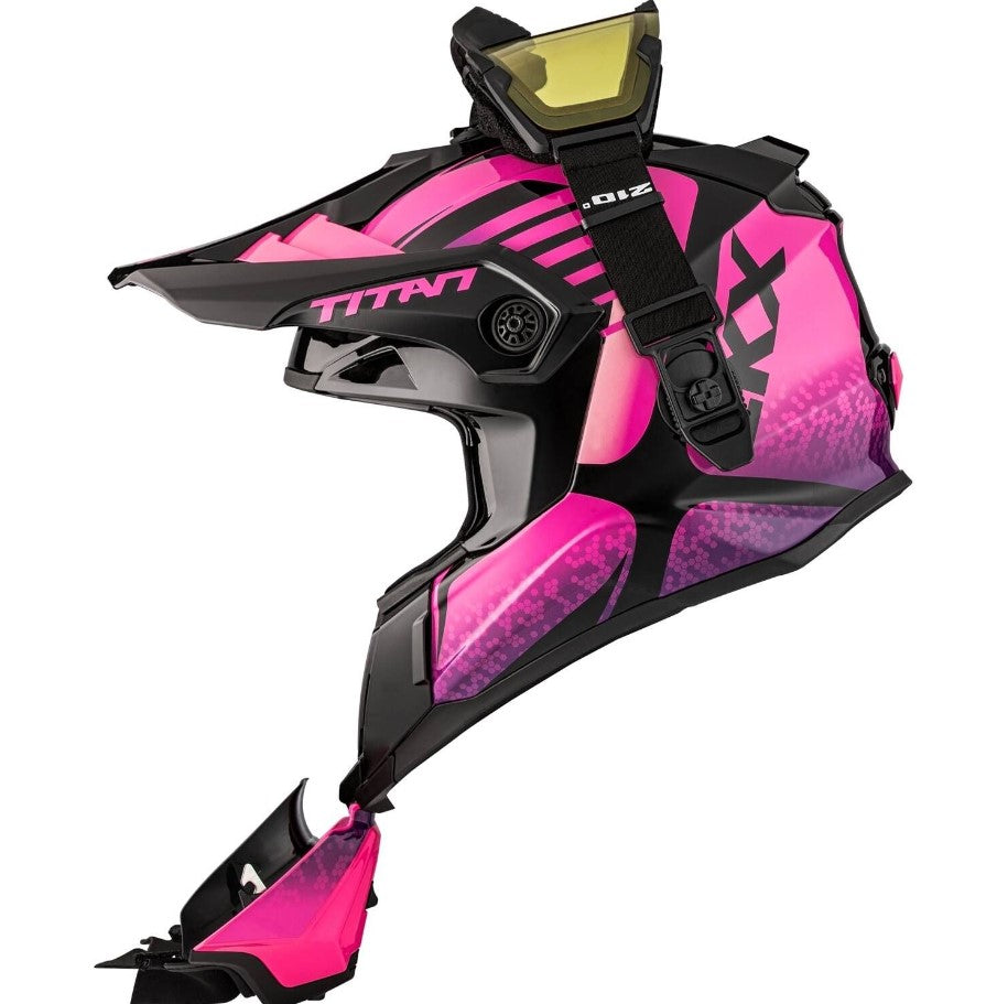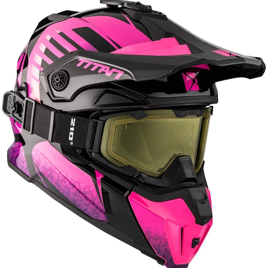You want to converse with your riding buddies or stop for a drink on the trail? No need to remove your helmet thanks to Titan’s unique removable muzzle. Take advantage as well of an exceptional field of vision with the 210° goggles. The shape of the goggles match the helmet’s opening perfectly to provide additional protection against the snow and cold.