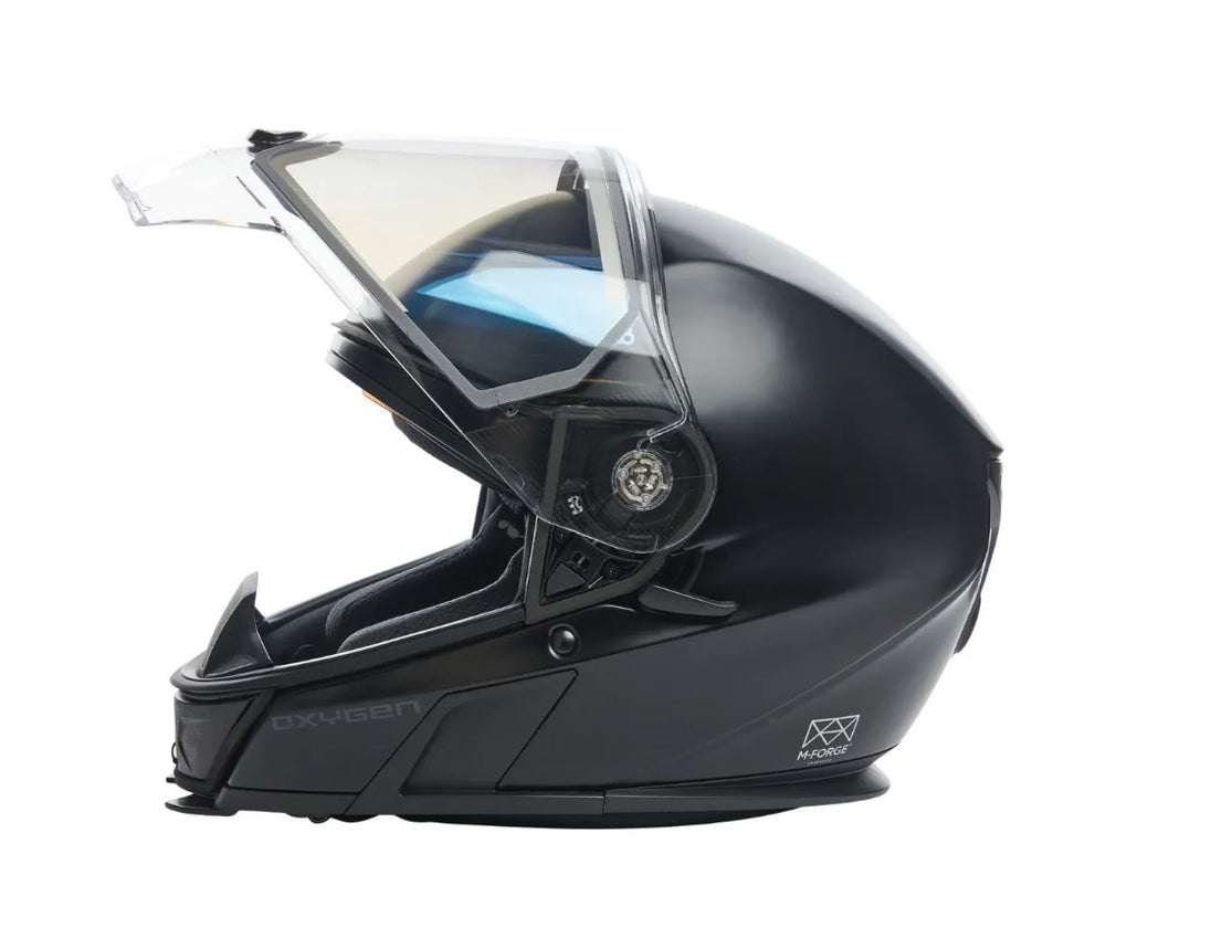 The Ski-Doo Oxygen Flow Helmet is an aerodynamic, lightweight full-face snowmobile helmet featuring an M-FORGE® Composite shell and tons of features! Thanks to its glove-friendly adjustable ventilation system, you don’t have to take your gloves off to adjust the temperature inside as weather conditions change. Plus, you can wear it with prescription glasses too!
