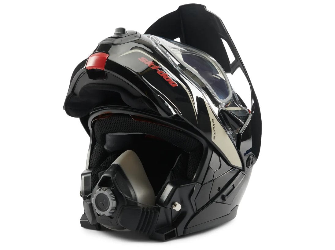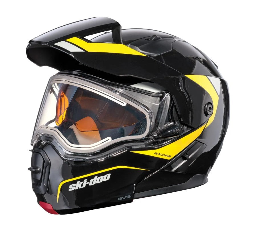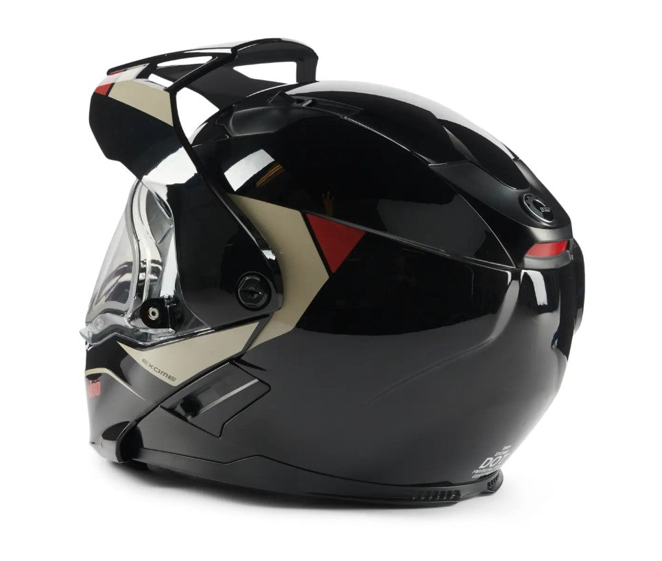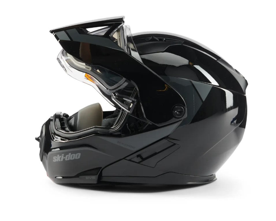 A step up from the Exome Sport Helmet, the Exome Sport Radiant Helmet is engineered with next-level technology to make sure your line of sight remains clear no matter what. This DOT-certified heated snowmobile helmet features a dual-lens Radiant electric-heated visor and a removable Breath Evac mask system, offering you a clear and comfortable fog-free riding experience, every time. Its modular design and advanced plastic composite shell delivers superior safety, while the removable aerodynamic peak adds versatility, so you can maximize every minute on the trails.