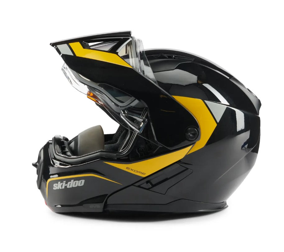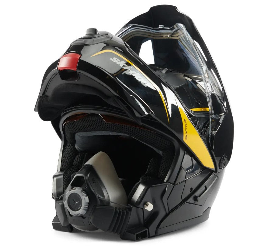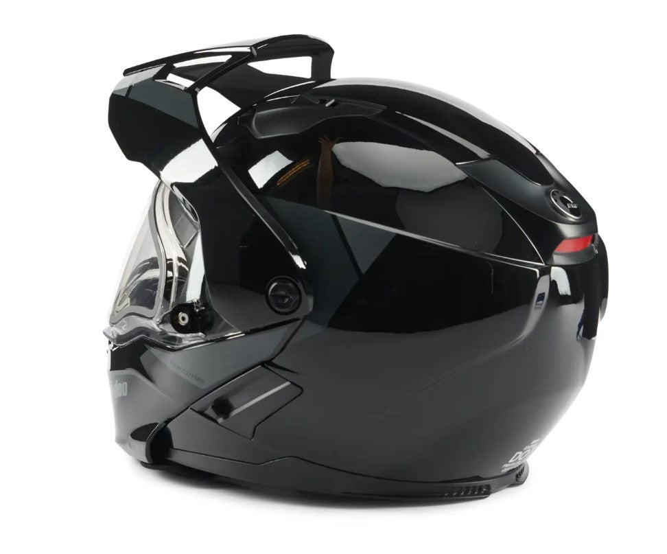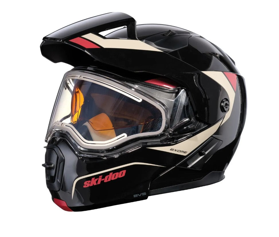 A step up from the Exome Sport Helmet, the Exome Sport Radiant Helmet is engineered with next-level technology to make sure your line of sight remains clear no matter what. This DOT-certified heated snowmobile helmet features a dual-lens Radiant electric-heated visor and a removable Breath Evac mask system, offering you a clear and comfortable fog-free riding experience, every time. Its modular design and advanced plastic composite shell delivers superior safety, while the removable aerodynamic peak adds versatility, so you can maximize every minute on the trails.