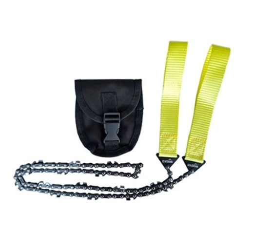 How many times have you been stuck trying to throw your bike over some fallen logs in the trail? Take a pocket chainsaw with you and help clear the trails for other riders. The Oxbow Chainsaw is a heavy-duty cutting tool that is great for camping or emergency situations. It easily saws through trees and limbs and features a comfortable nylon wrist strap for less stress on your hands. Flexible 24″ or 36″ blade cuts at a variety of angles with little clearance. Sharpens with standard 1/8″ saw blade sharpener. Can be extended by simply adding cordage to each handle. Self- cleaning teeth.