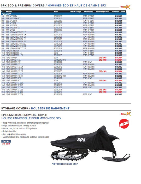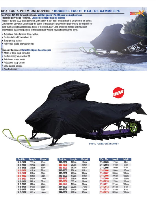 SPX PREMIUM EASY LOAD COVER Made of durable 600D black polyester, with a built-in soft inner lining similar to Ski-Doo ride-on covers. Our premium Easy-Load Cover gives the ability to first cover a snowmobile then operate...Regular price $199.95 -