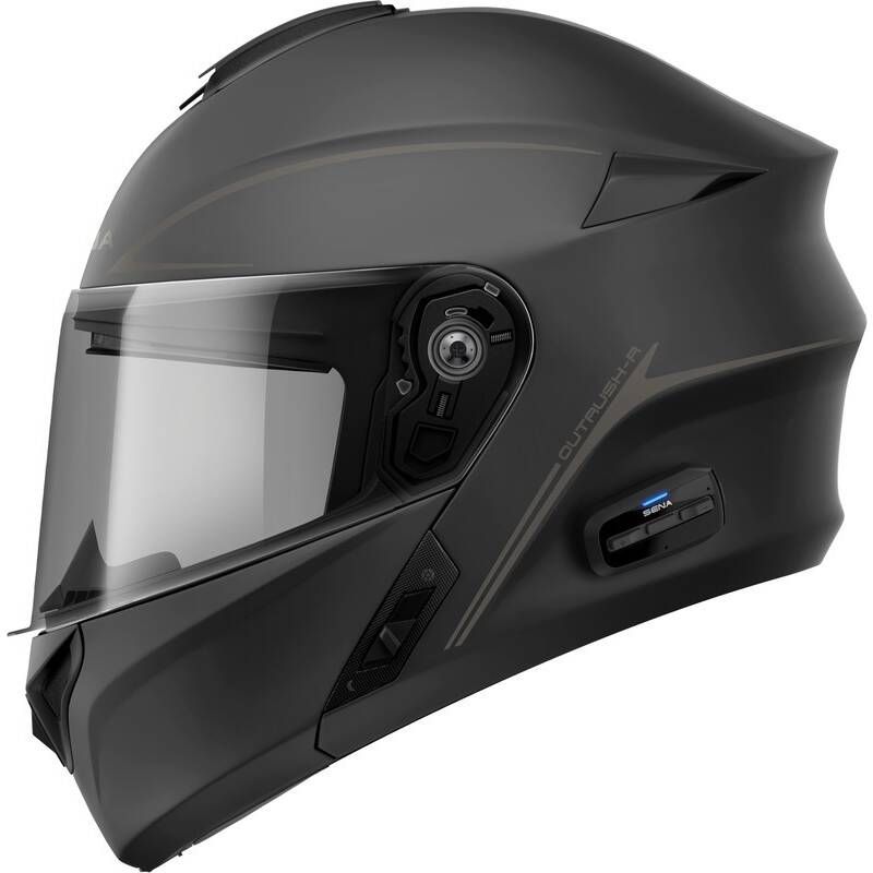 Sena Outrush R Helmet - with the convenience of Bluetooth communication directly built-in to your helmet. Meet the evolution of a solid design and integrated intercom system: the Outrush R. This Bluetooth modular motorcycle helmet adapts to all riding conditions with easy access controls while providing seamless integration with Sena world-class audio Bluetooth system. The Outrush R comes complete with a sleek and versatile modular design, integrated speakers and a microphone, and smartphone pairing to access music and phone on your ride. It's time everyone gets to ride in style: no matter what the conditions, the Outrush R has you covered.